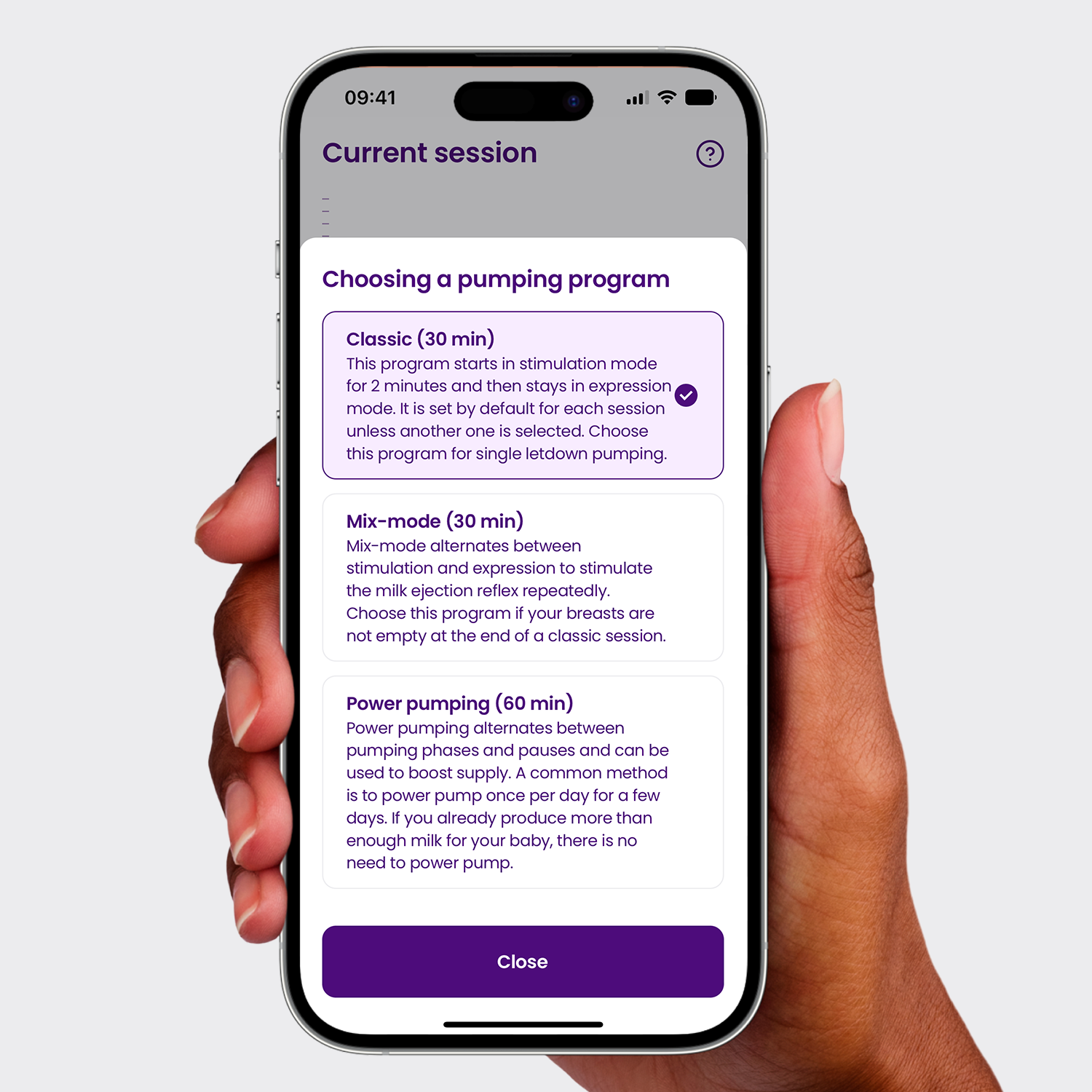 Optimize your sessions by choosing the breastfeeding program that best suits your pumping goals.