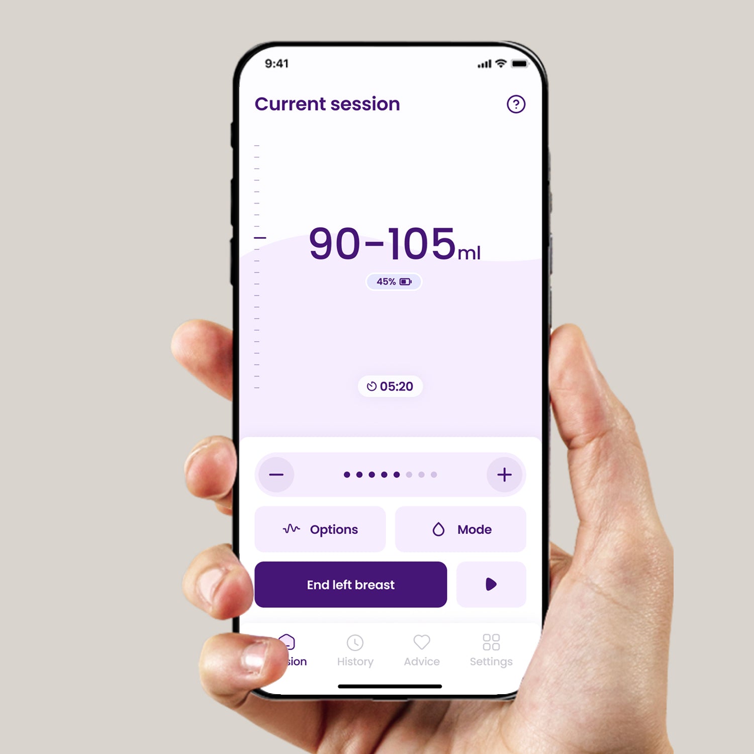The breast pump automatically switches to expression mode, and you can precisely program the session.